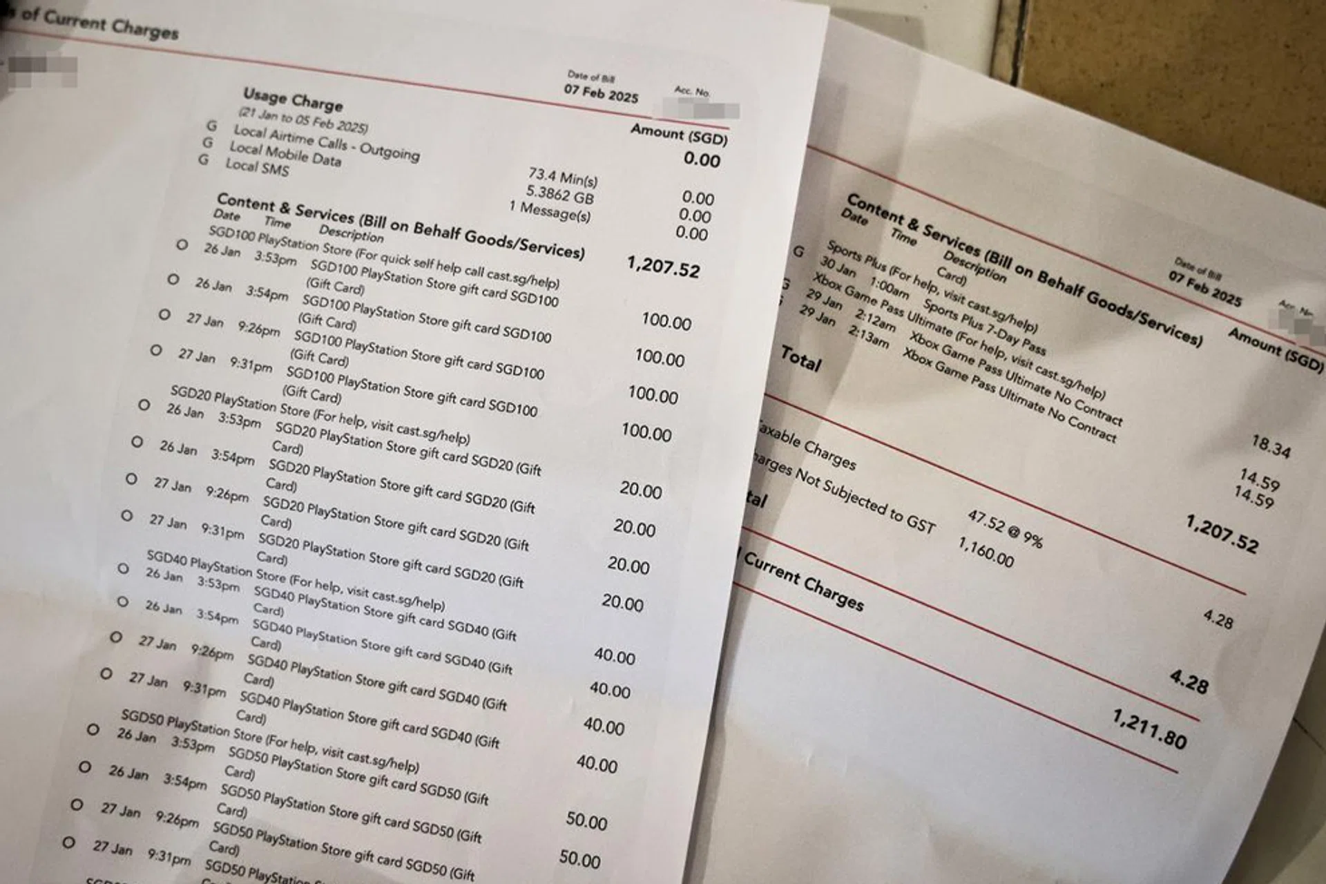 "Mr Yeo informed us on 5 Feb about charges to his Singtel mobile bill for PlayStation vouchers which he had not purchased. We advised him to make a police report while we investigated the case."
