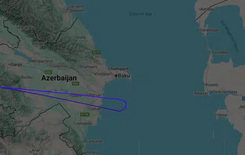 According to Flightradar24, a flight-data site, the aircraft appeared to make a turn back above the Caspian Sea, off Azerbaijan.