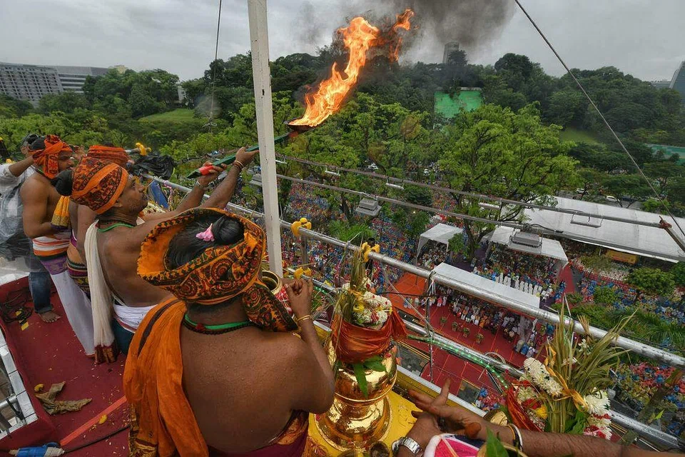 As dark clouds formed, devotees who had gathered outside the Sri Thendayuthapani temple on Thursday morning reached for their ponchos and umbrellas.