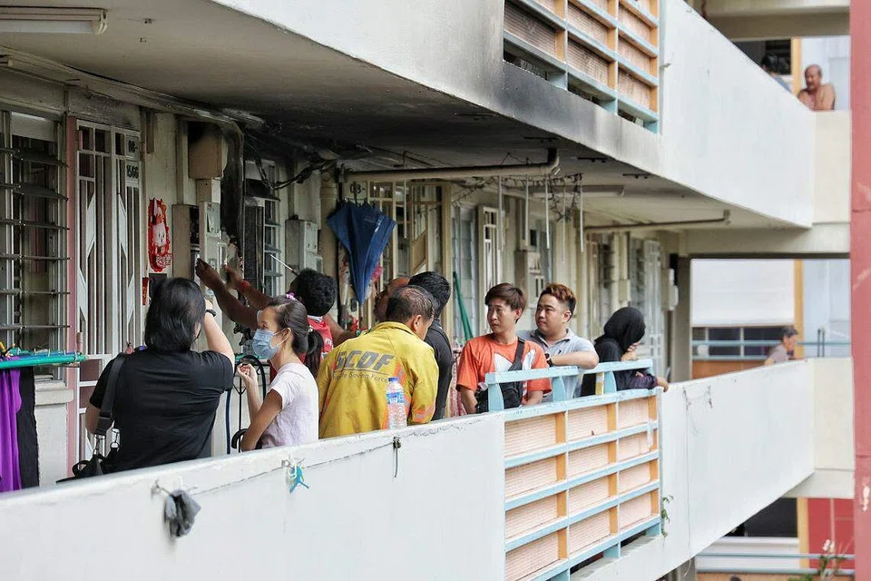 Shin Min reported that three people - a 19-month-old girl, an eight-year-old boy and a woman, believed to be the two children's mother - ran out of the flat after the air-conditioner unit caught fire.