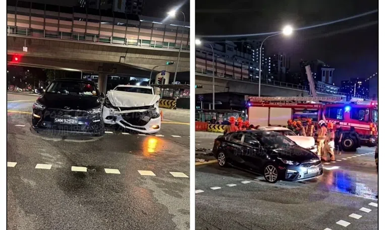 A 45-year-old driver, her two male passengers, aged 45 and 41, and a 37-year-old female passenger from the other car, were taken to the National University Hospital. All of them were conscious.