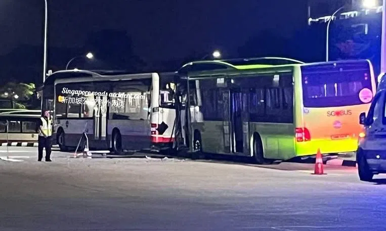 Photos of the incident's aftermath posted on the Singapore Roads Accident.com Facebook page show the front of a green bus wedged against the rear end of a white bus. At least two SCDF ambulances are also seen at the scene.
