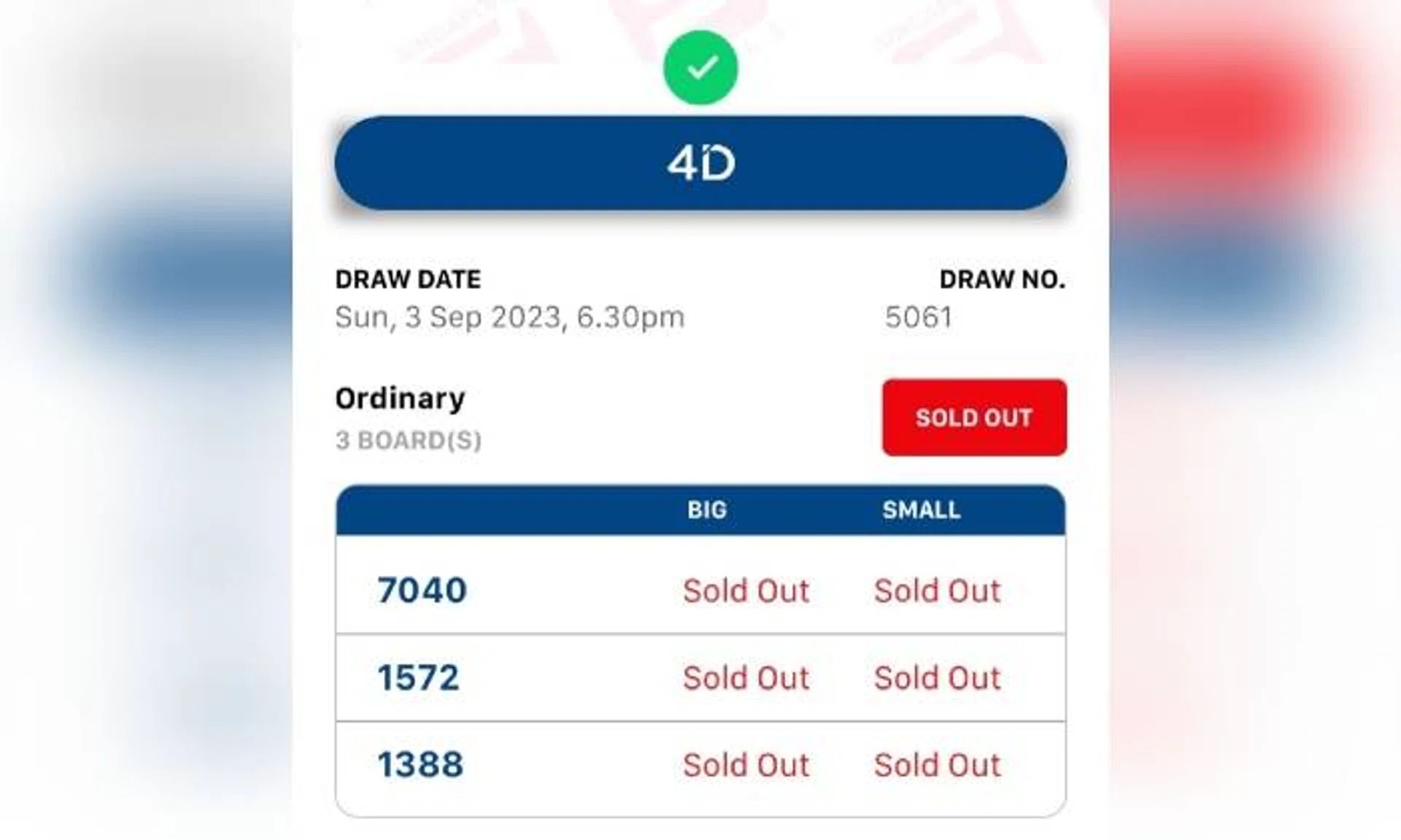 Those three numbers - 7040, 1572 and 1388 - were all sold out for both Saturday's and Sunday's 4D draws.