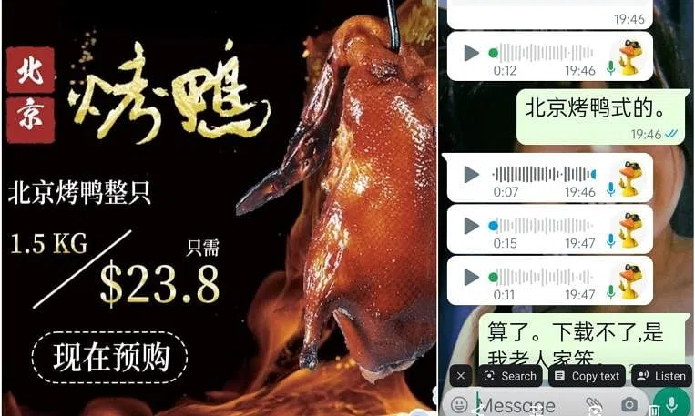 He was enticed by the deal that offered $23.80 for a 1.5kg peking duck with $5 shipping and contacted the seller on Facebook.