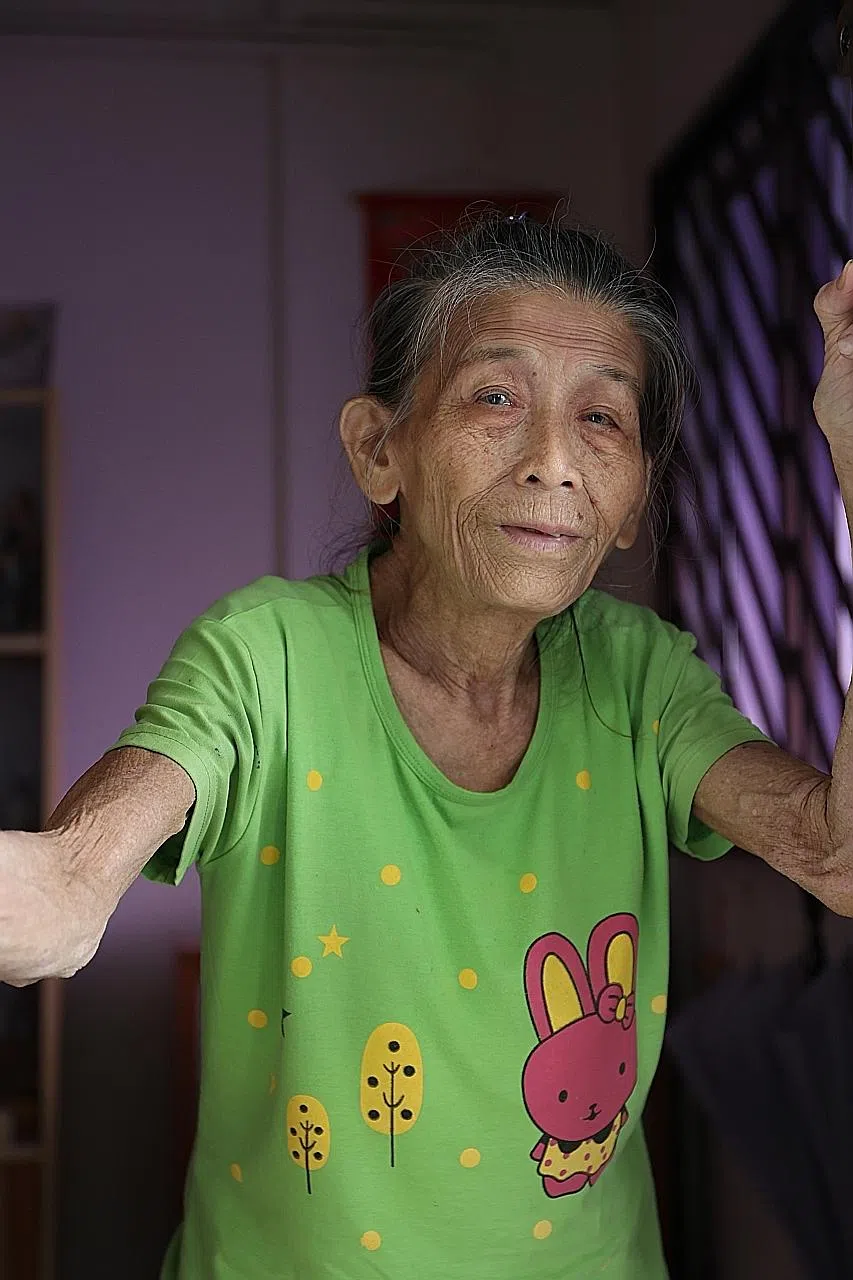 Madam Lim, who has a curved spine and heart issues, could not recall how many pails she filled, but "it felt like an hour that would never end".