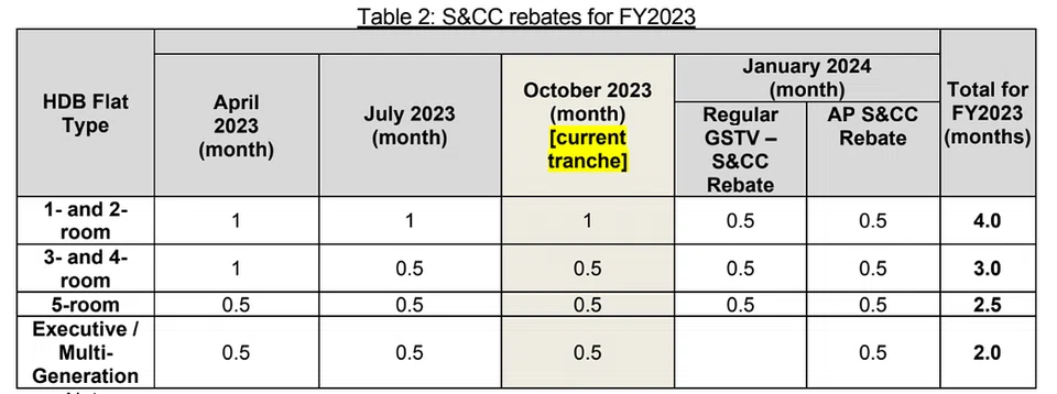The ministry added that eligible households will also receive an additional half-month S&CC rebate in January 2024.
