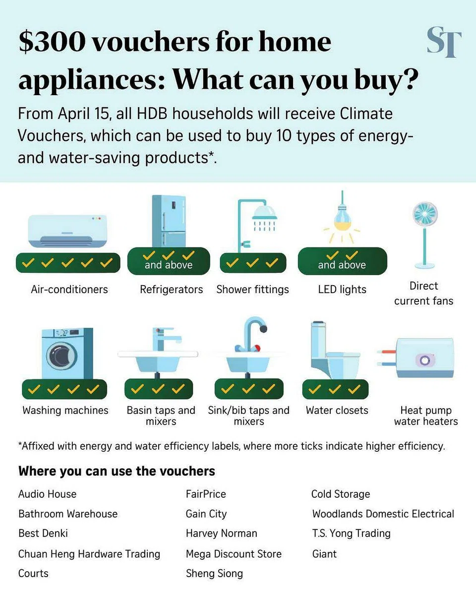 All HDB households can now use $300 in vouchers for eco-friendly home appliances