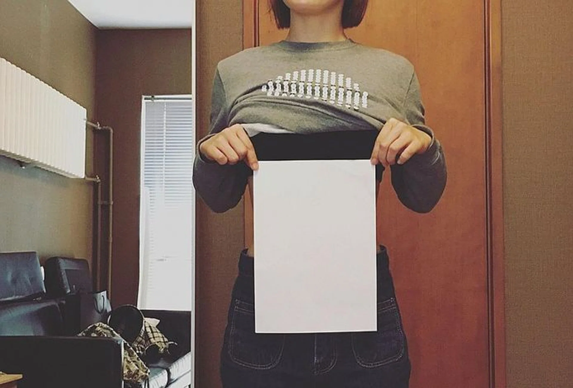 If a woman is able to hide her waist behind the shorter edge of an A4-sized paper, fully wrap a banknote around her wrist or cover her kneecap with an iPhone 6, she wins the challenges.