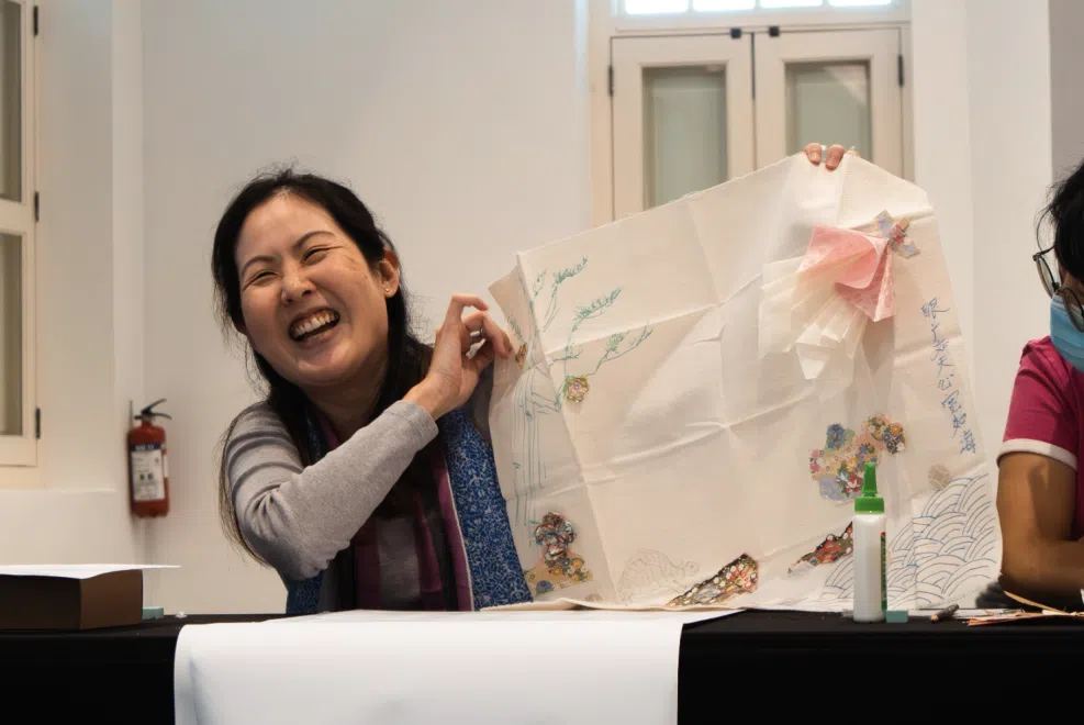 On June 21, workshop participants toured the Fukusa exhibition at Peranakan Museum and spent almost two hours in art therapy, where qualified art therapists inspired the participants in creating reflective responses to objects and motifs they saw.