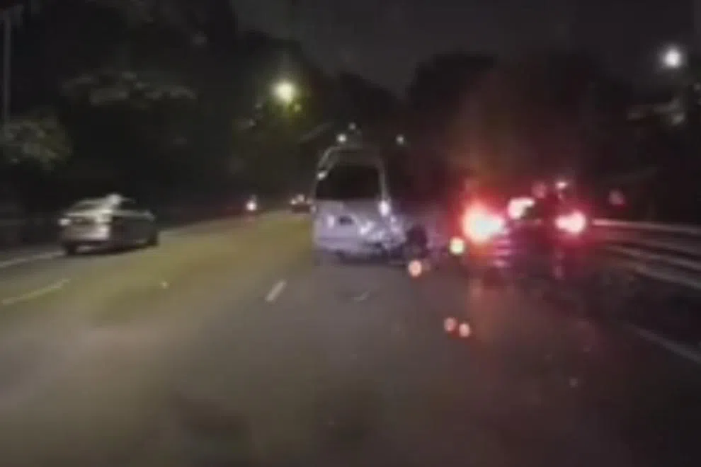 The Straits Times understands that the van was behind a lorry and was in the process of changing to the first lane to overtake the slower vehicle when the BMW crashed into it from behind.