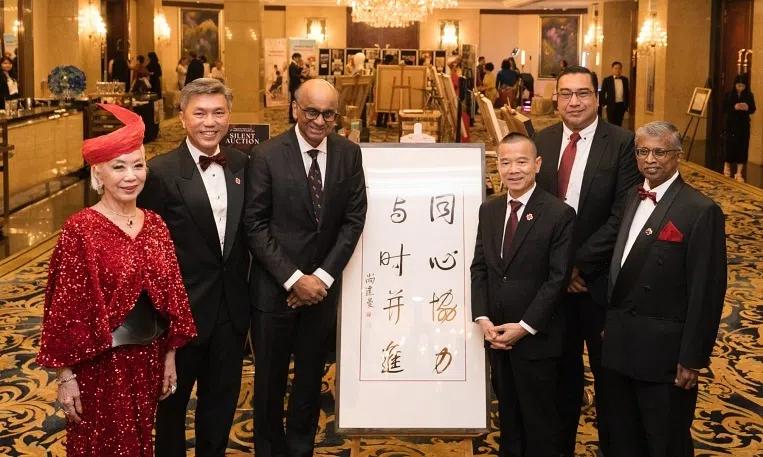 A Chinese calligraphy artwork by President Tharman Shanmugaratnam fetched $308,888 in an online charity auction for the Singapore Red Cross' (SRC) 75th anniversary benefit gala on Nov 2.