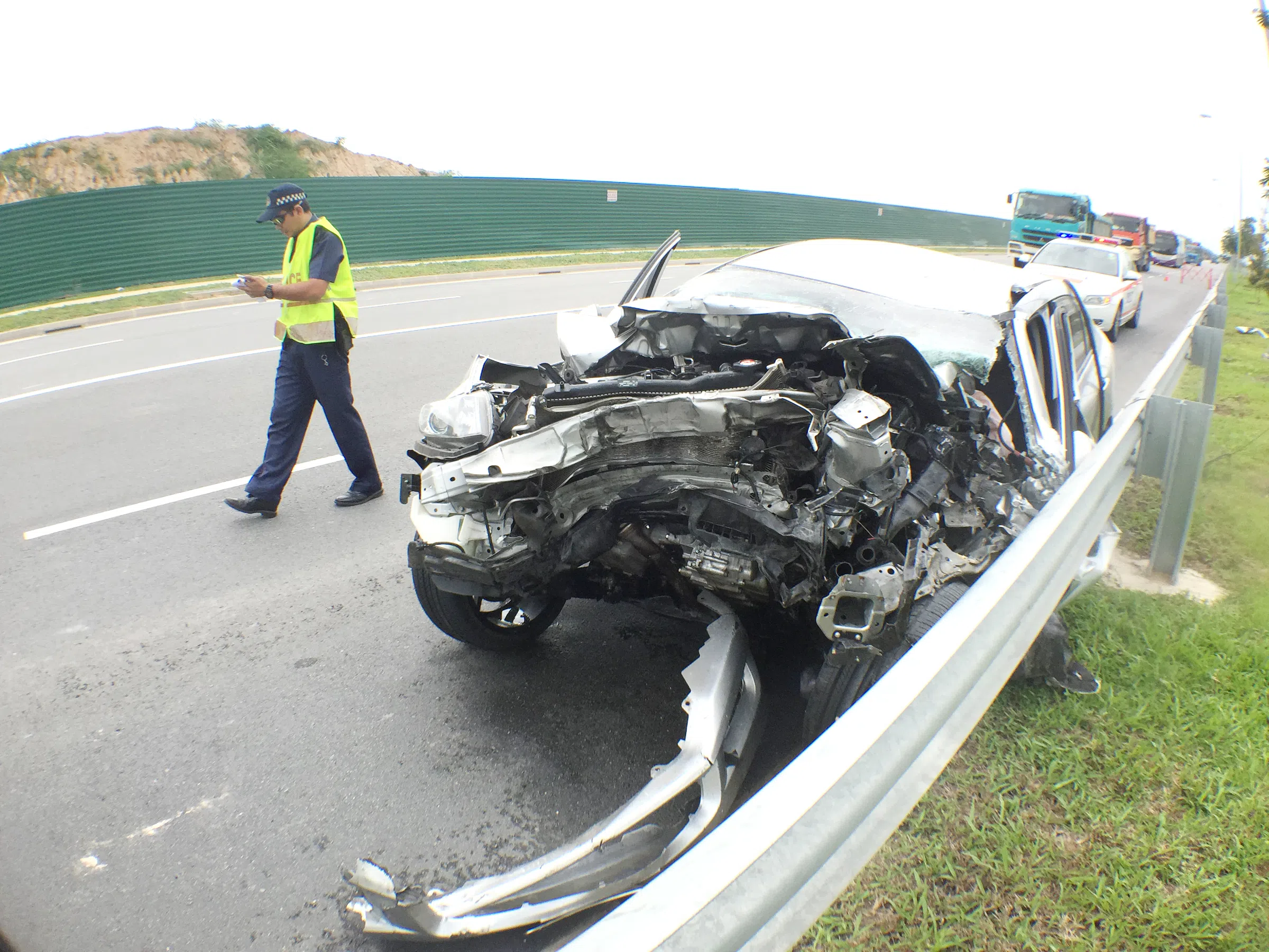 The driver of the silver car, a 30-year-old man, was taken conscious to Changi General Hospital in an ambulance.
