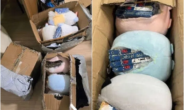 Following a referral from the Immigration and Checkpoints Authority, Singapore Customs officers uncovered seven parcels with cigarettes hidden in plush toys declared as "decorations".