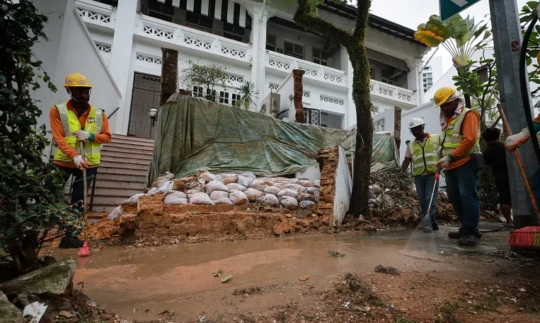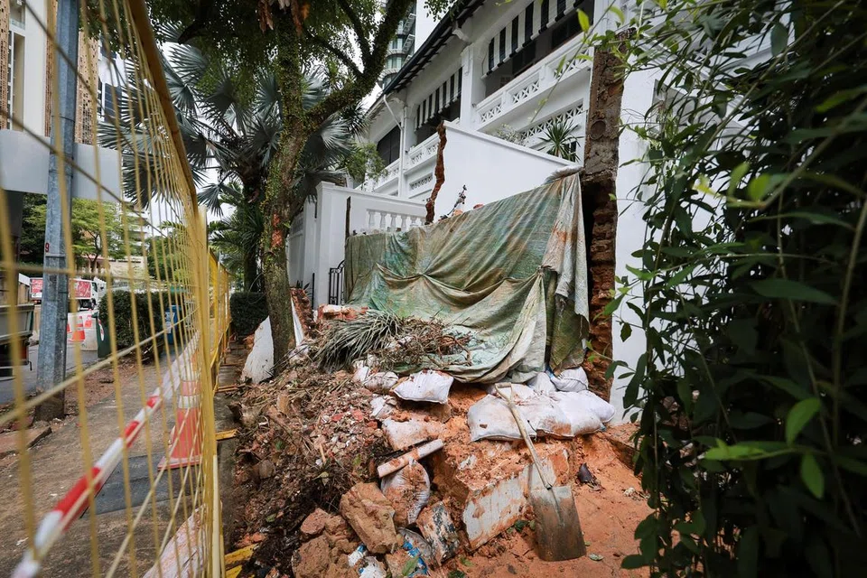 On Dec 29, a brick retaining wall at the front of two conserved terraced houses in Cairnhill Road also collapsed amid the wet weather.