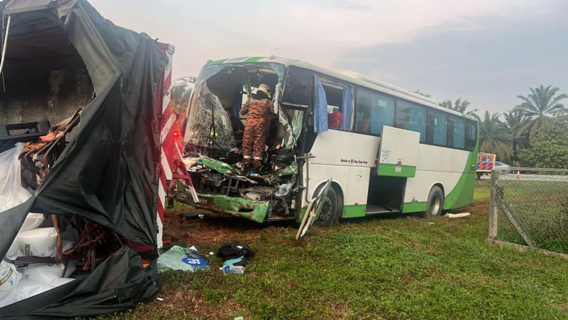 The Fire and Rescue Department of Malaysia (JBPM) shared on Facebook that a coach heading for Singapore was involved in a collision with a 10-tonne lorry in Kulai.