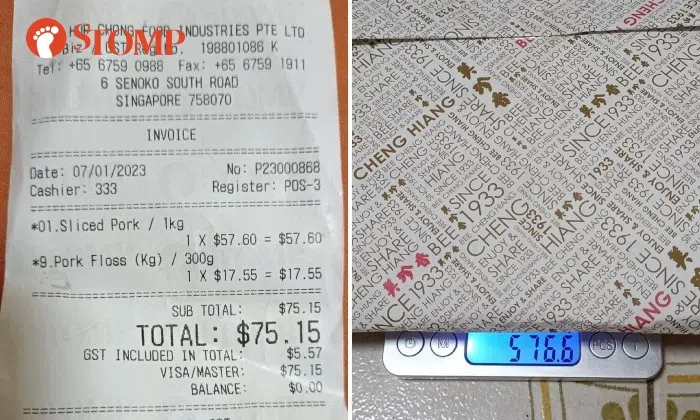 The Stomper also shared a photo of the wrapped bak kwa on a weighing scale, which showed that the weight was 576.6g.