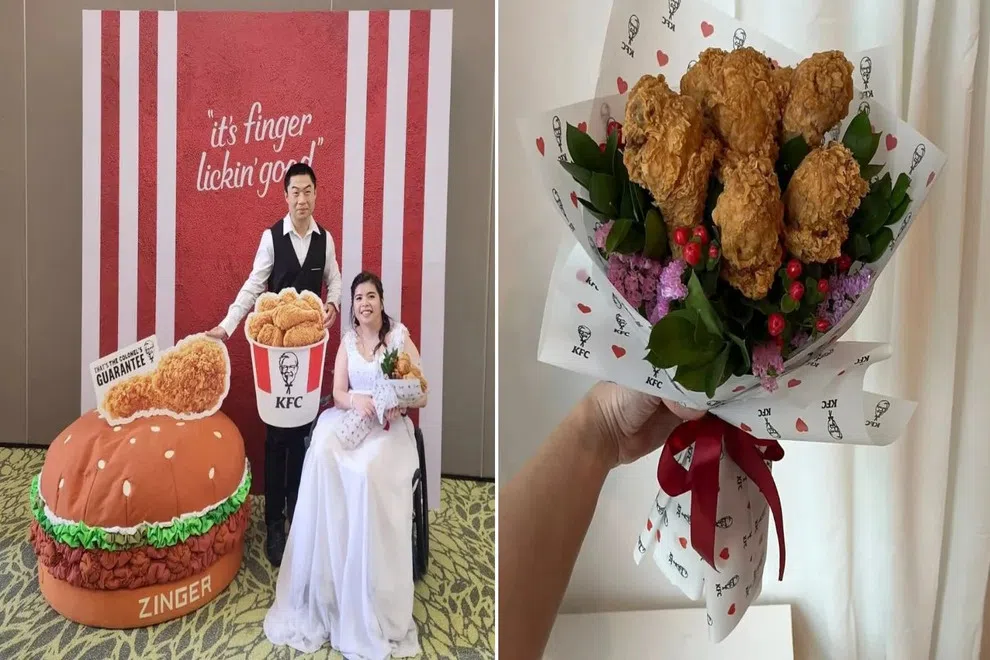 While preparing for her wedding banquet, Ms Wong, 32, who loves eating KFC, had emailed the fried chicken restaurant hoping for a souvenir, reported Shin Min Daily News.