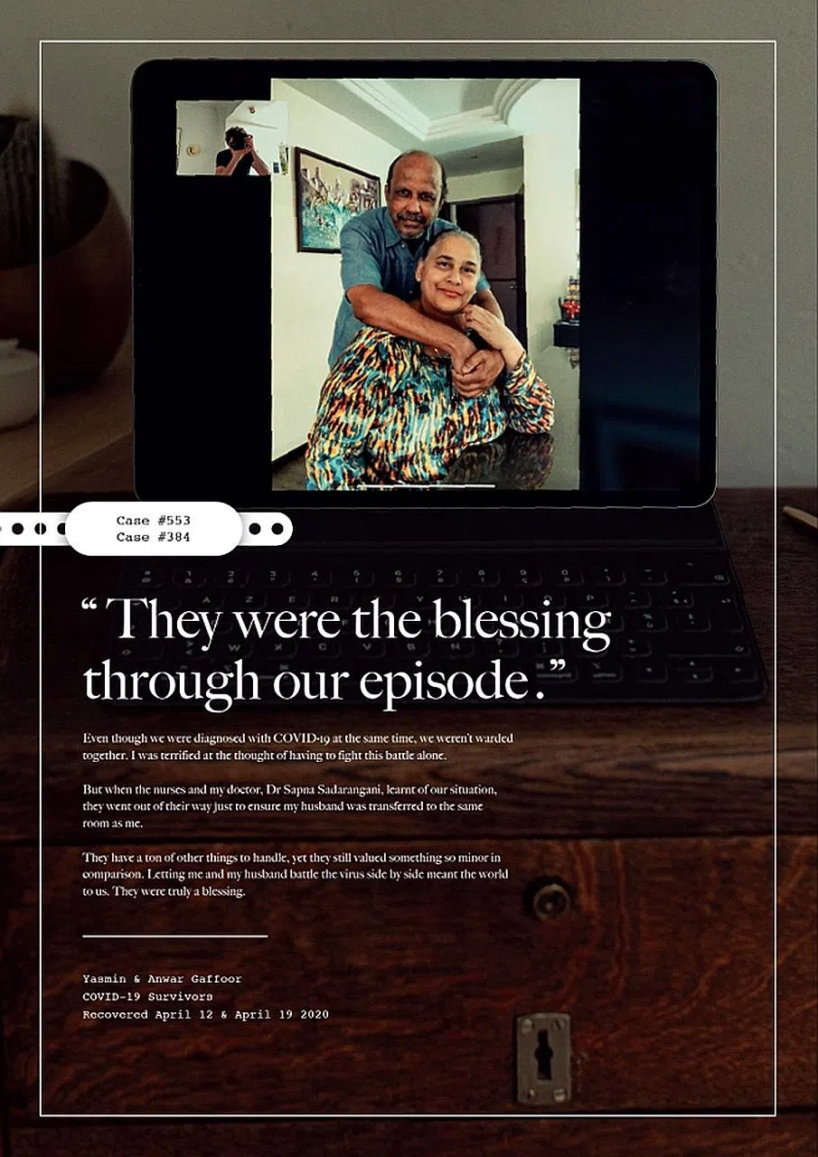 Now, the Gaffoors are part of a group of Covid-19 patients featured in an advertisement campaign initiated by ad agency BBDO Singapore and media agency OMD Singapore to pay tribute to the healthcare personnel on the front lines of the coronavirus battle.