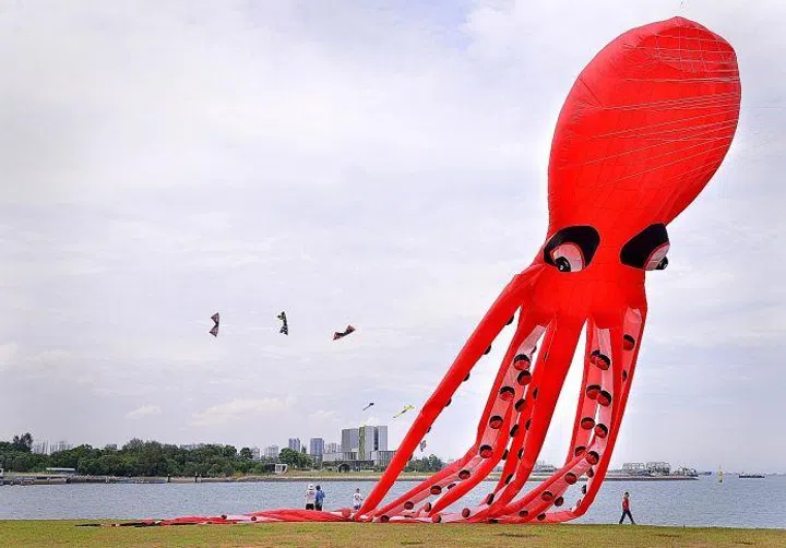 Mr William Yeo's 30-metre-long octopus kite, custom-made from China.