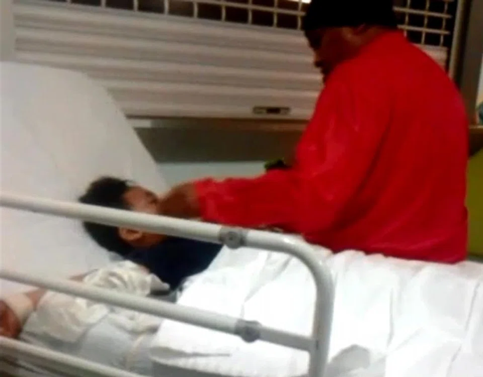 Another, which Mr Ridzuan uploaded to his Facebook page early this month, showed Akid strapped to the hospital bed, spitting at his father after being fed water.