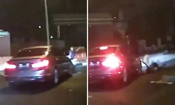A video online shows a car turning right hitting a pedestrian in Kembangan.
