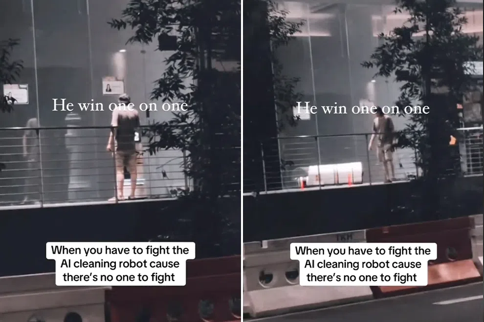 The TikTok caption humorously summarized the incident: "When you have to fight the AI cleaning robot 'cause there's no one to fight," adding, "he wins one-on-one".