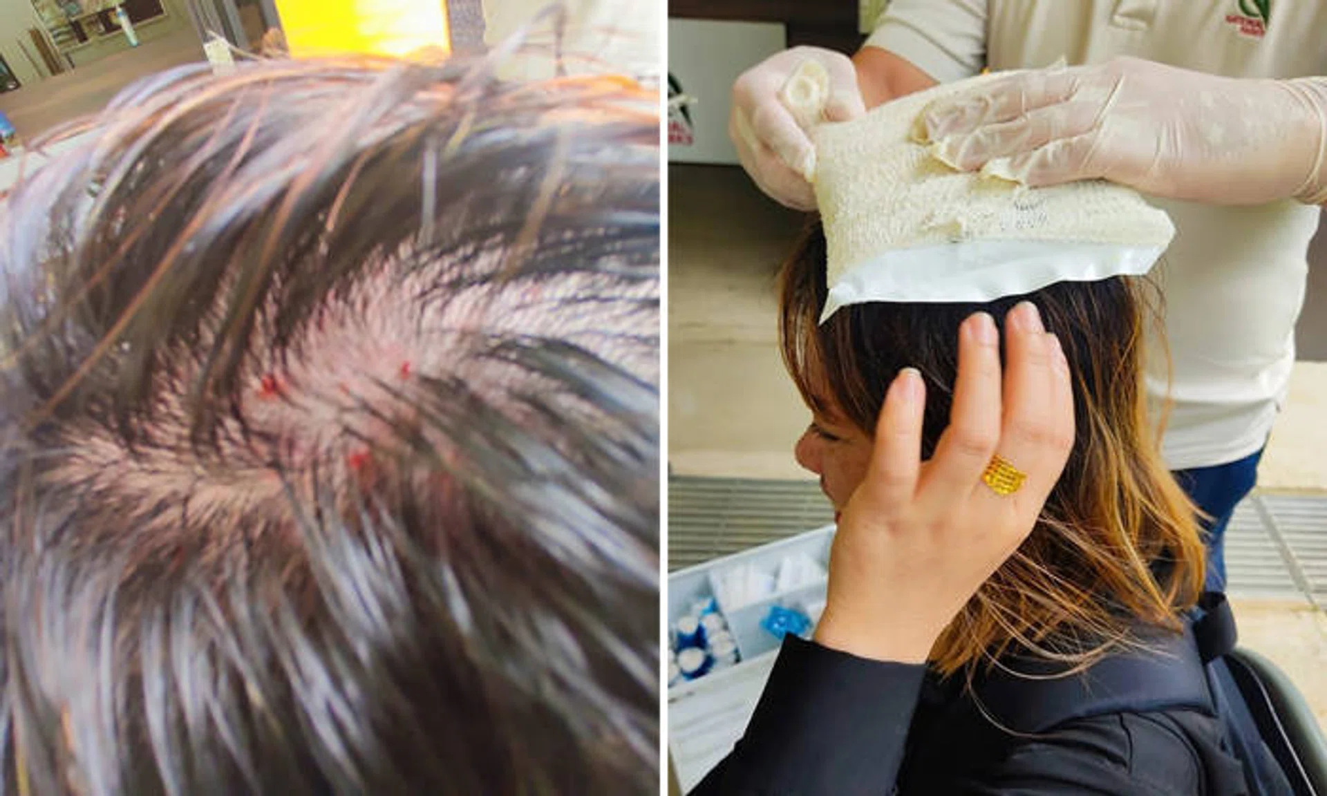 Photos show how the durian had left marks on the woman's hat. Staff from the National Parks Board (NParks) can be seen tending to her injury.