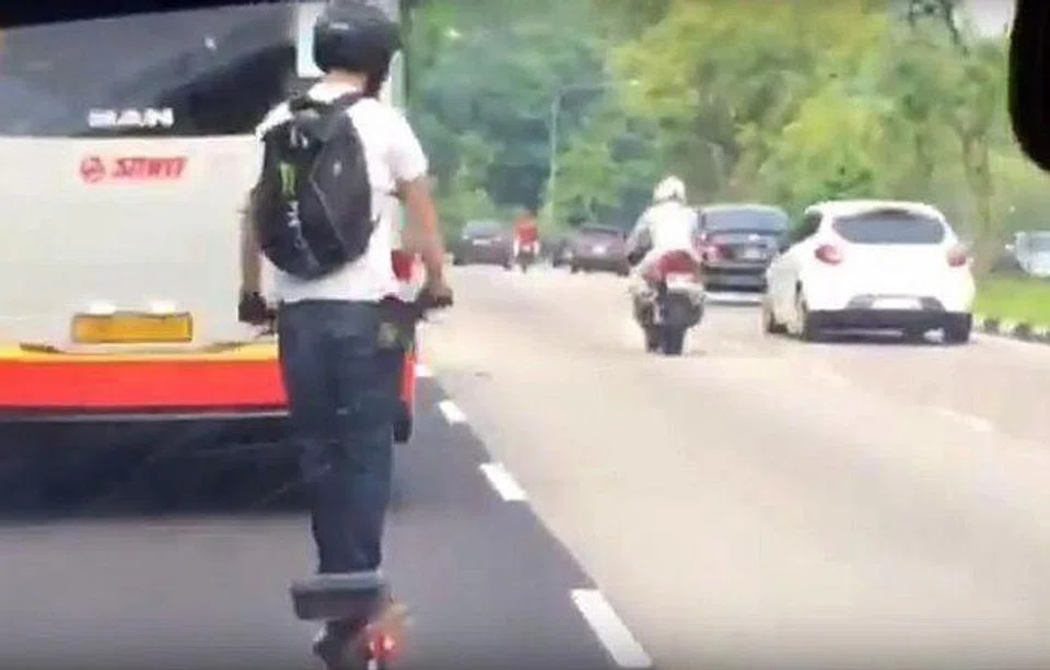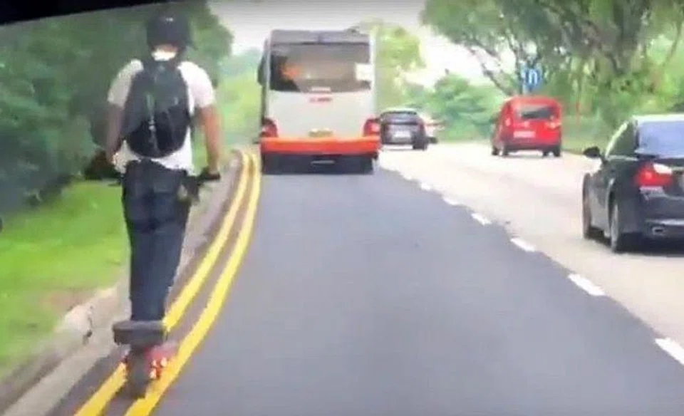 But an e-scooter rider not only blatantly ignored the rule by riding on Mandai Road in heavy morning traffic, he also, at one point, flirted with injury, perhaps even death, by cutting out into the middle lane to overtake a bus.