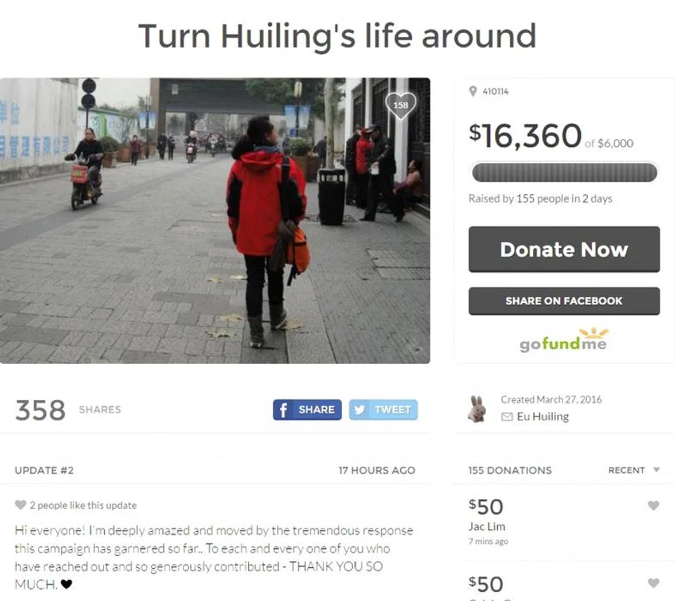 Miss Goh, a project manager, said: "I've known Huiling for over 10 years and witnessed first-hand her suffering. Huiling is a very private person and people find it hard to reach out to help. Since she has allowed me into her life, I will do anything to help her."
