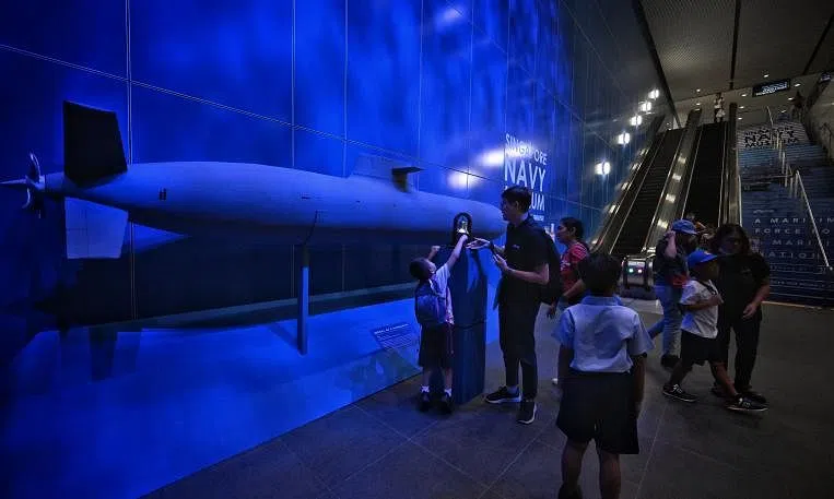 Passengers taking the Downtown Line (DTL) will be able to learn more about Singapore's maritime defence story when they alight at Expo MRT station, which has been decked out in a naval theme that includes a physical 3D model of a submarine.