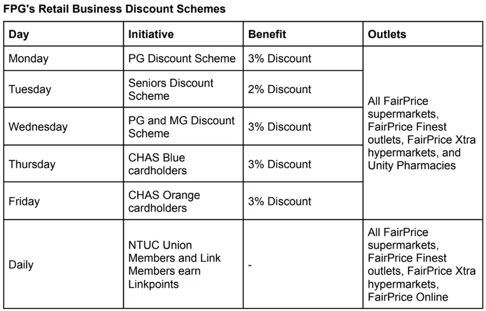 FairPrice will be extending discount schemes for Merdeka Generation, Pioneer Generation and Community Health Assist Scheme (Chas) orange and blue card holders into 2025.