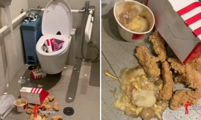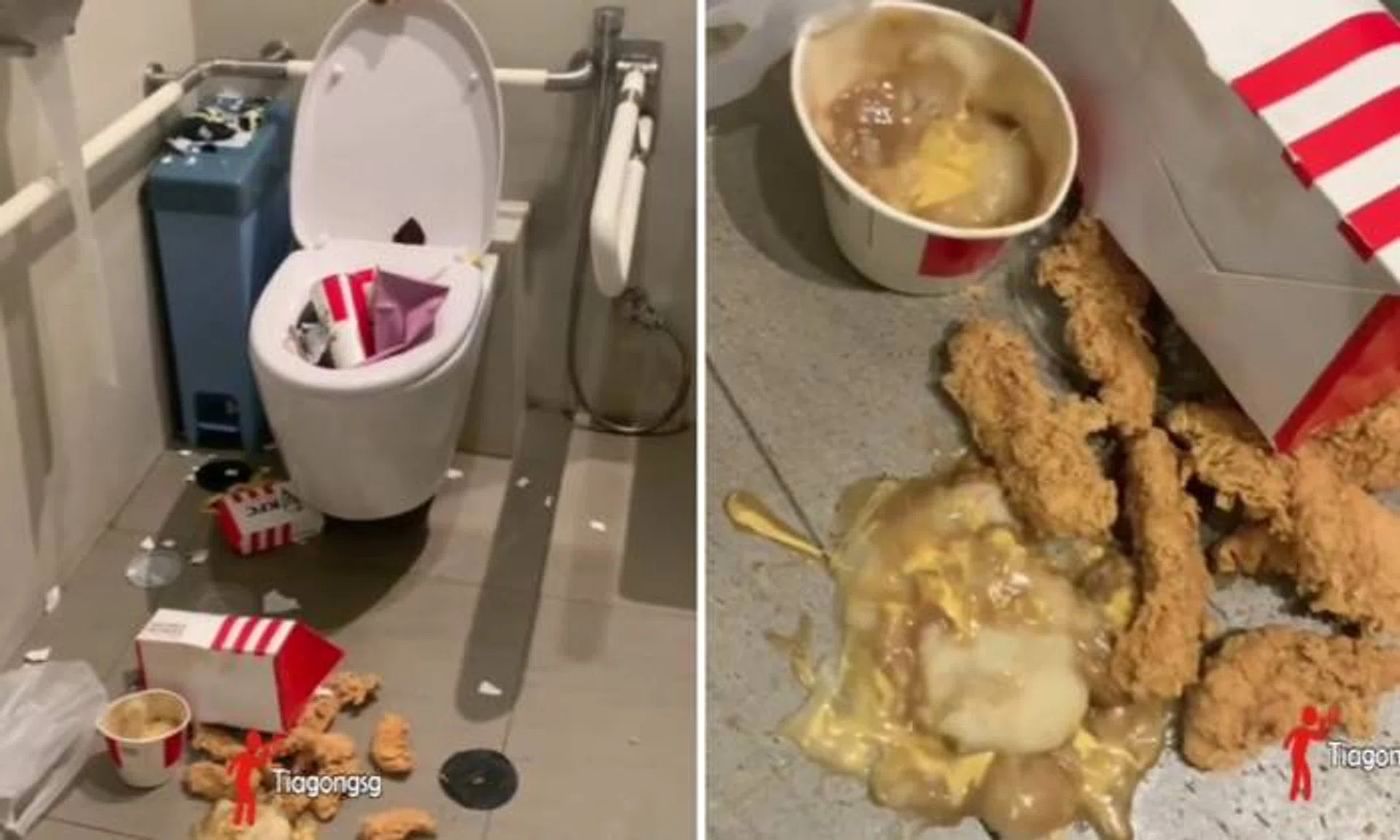 A video of the not so finger-lickin' good aftermath was shared online by Tiagong.sg on Monday (Oct 9).