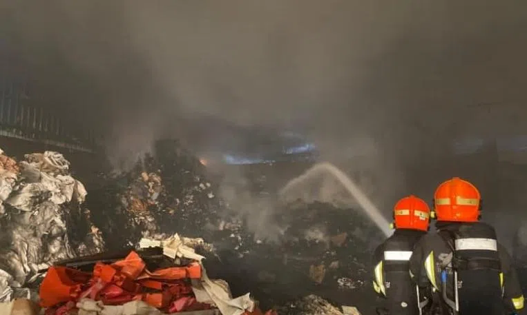 A total of 40 firefighters, four water jets and an unmanned firefighting machine were deployed to control the fire. Foam was used to cover the surface of the waste. Firefighters had to wear breathing apparatus sets due to the heavy smoke.