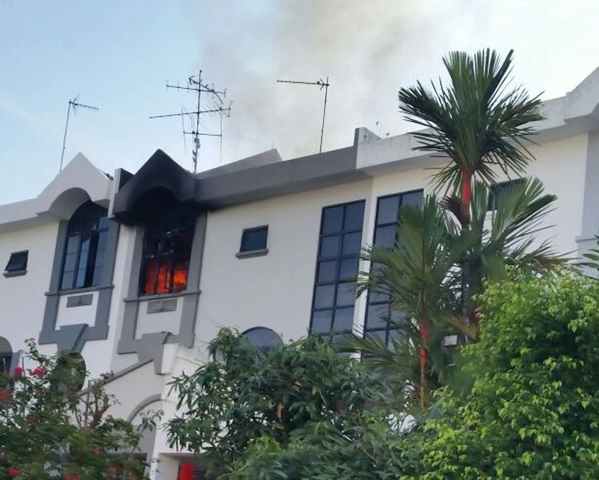 Thick black smoke was seen bellowing through the unit's roof, part of which had collapsed, said an SCDF spokesman.