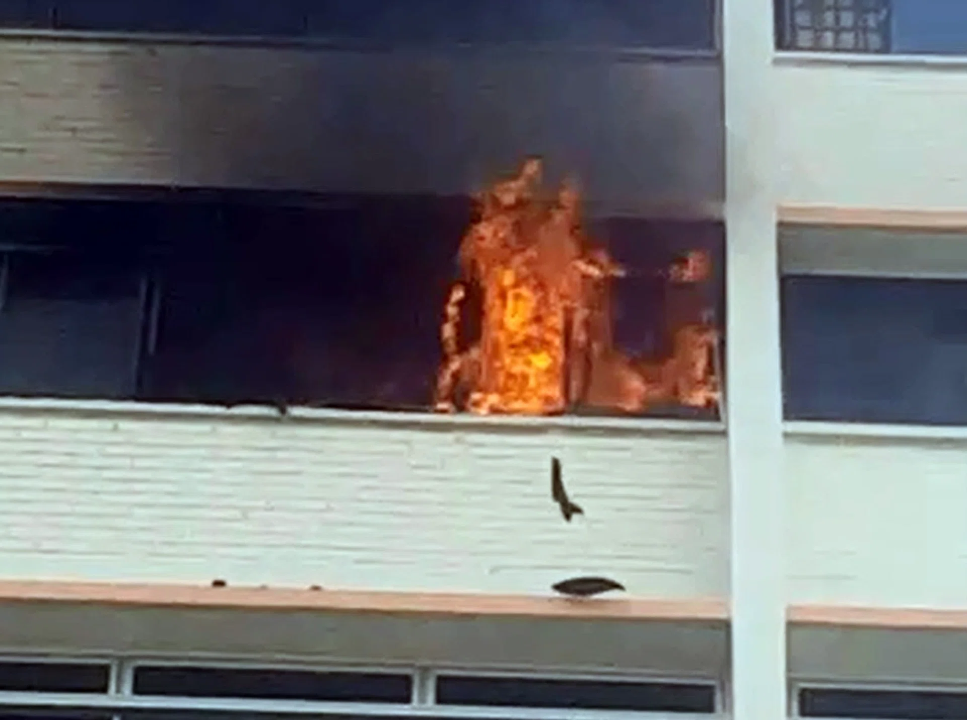 Videos taken by a neighbour showed flames coming out of the living room of a five-room flat at Block 215, Marsiling Lane 3.