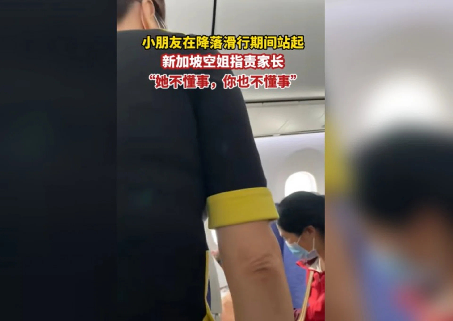 The clip shows a cabin crew member - from what appears to be Scoot airlines - berating the mother, saying in Mandarin: "Don't you know it's very dangerous? I'll have to write a report if anything happens to him. And it's going to be very long."