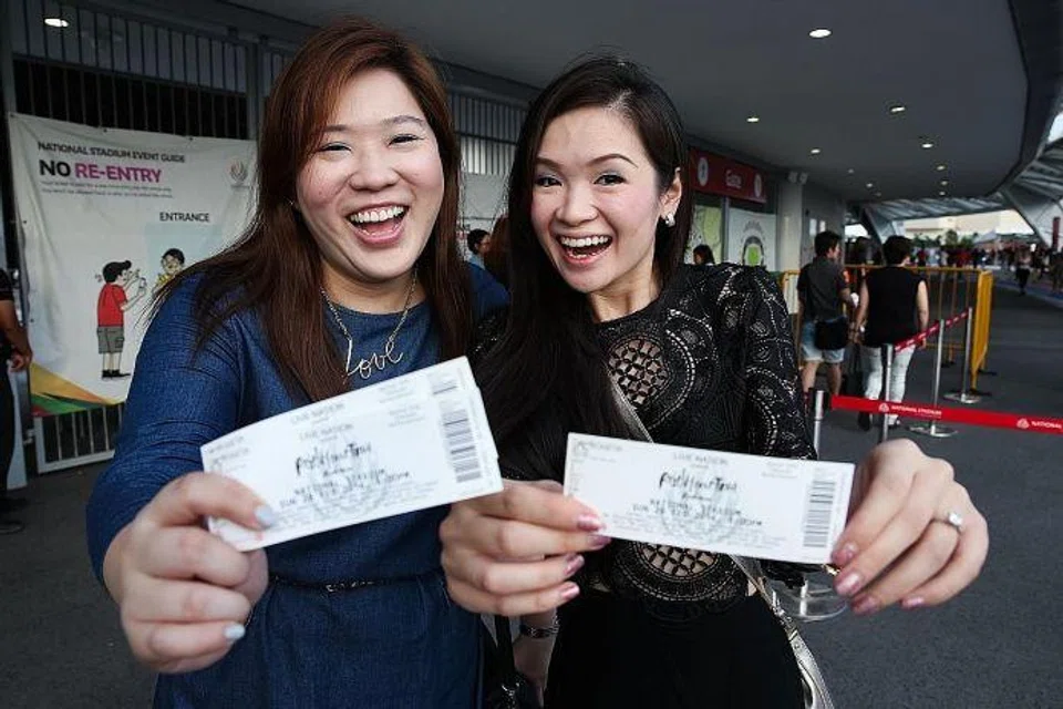FANS: (From left) Secretary Denise Ang, 29, and civil servant Verity Low, 29, at the concert yesterday. TNP PHOTOS: PHYLLICIA WANG