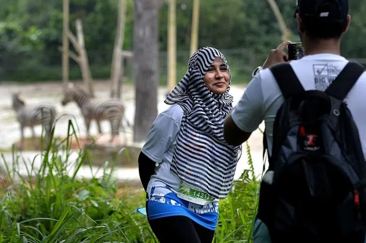 About 5,000 people - including couples, families with children, and the elderly - turned up despite the rainy weather to complete a scenic 5km route through the Singapore Zoo and Night Safari.