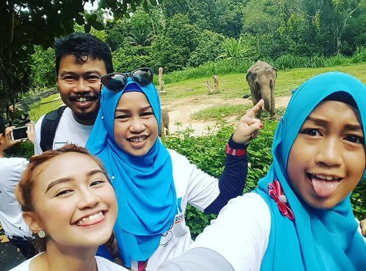 Many took the opportunity to stop along the way to pose for photos and selfies at strategic spots in front of the enclosures of animals such as elephants, zebras and giraffes.