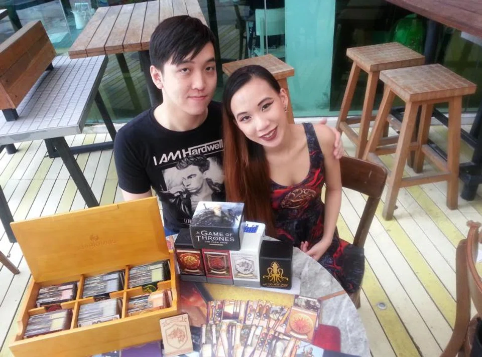 Then there are Miss Charlotte Lun and Mr Derek Lee, both 24, who have been dating for over a year and who compete together in AGoT tournaments.