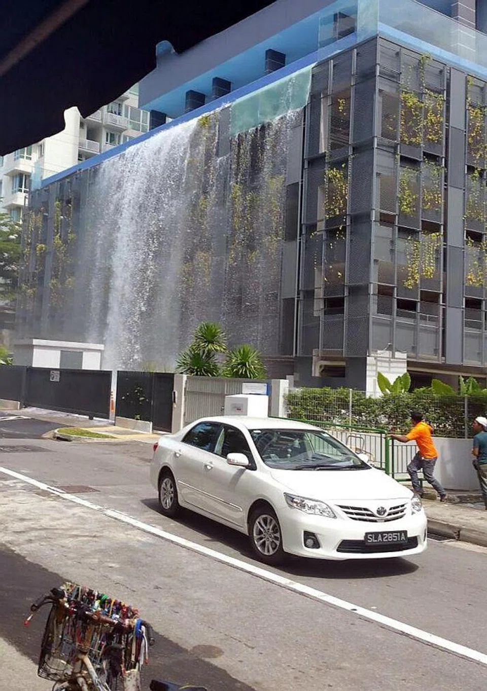 The 56-year-old said he saw the glass panels giving way before falling to the ground. Pool water then gushed down like a waterfall.
