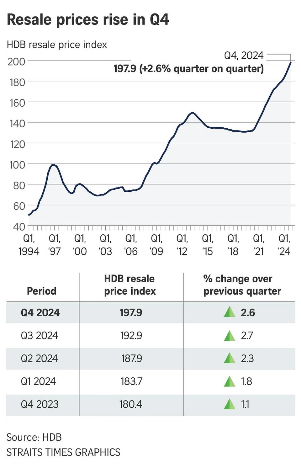 HDB said the fourth-quarter 2024 resale prices were driven by a strong broad-based demand and tight market supply.