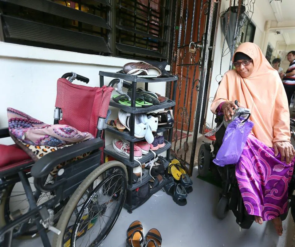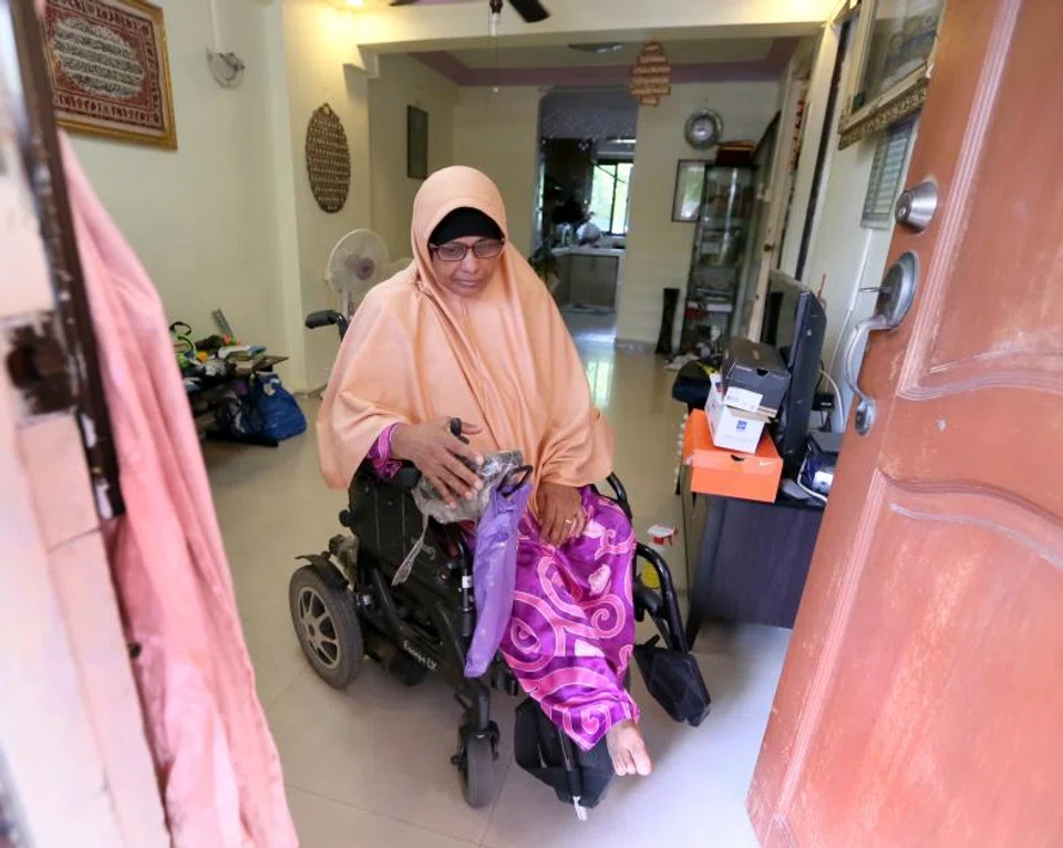 Asked about the condition of the rundown motorised wheelchair parked outside her door, Madam Fatimah joked about a situation she had got herself into.
