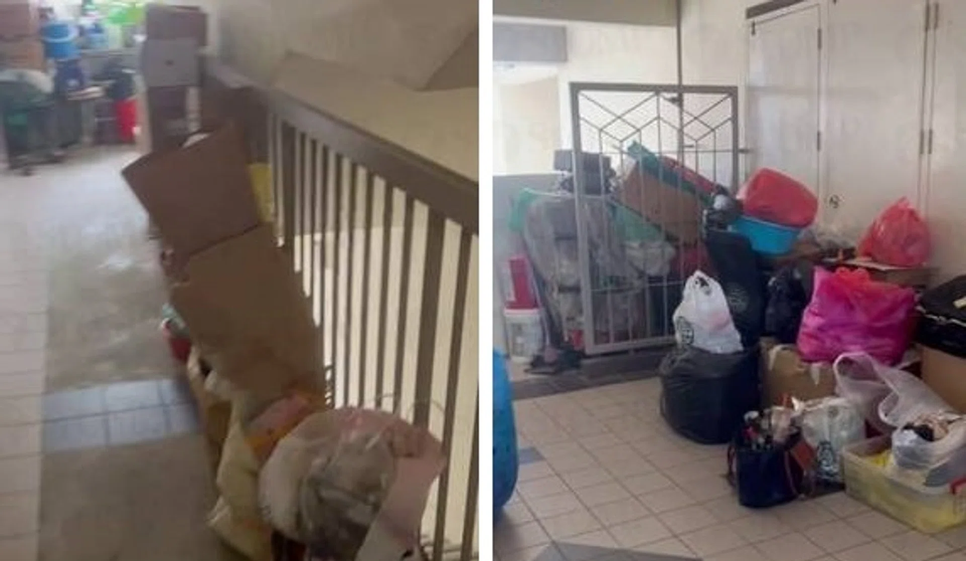 "We are desperately in need of a solution to resolve this matter ASAP as the problem causes us difficulty to move around and the clutter causes a lingering stench along the corridor."