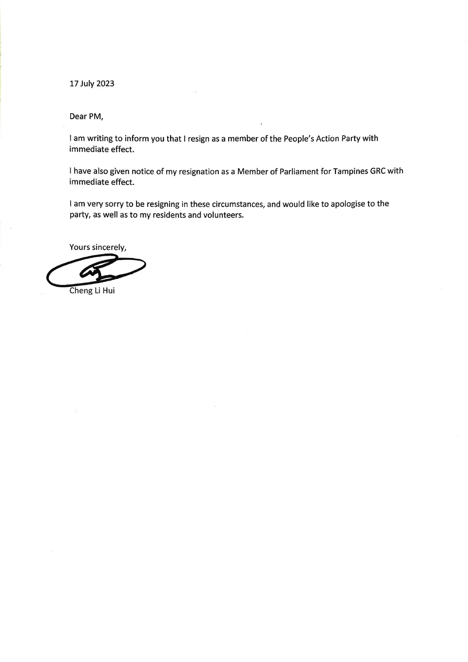 He was speaking at a press conference at the Istana on Monday afternoon following his announcement of Mr Tan and Ms Cheng's resignations from the PAP.