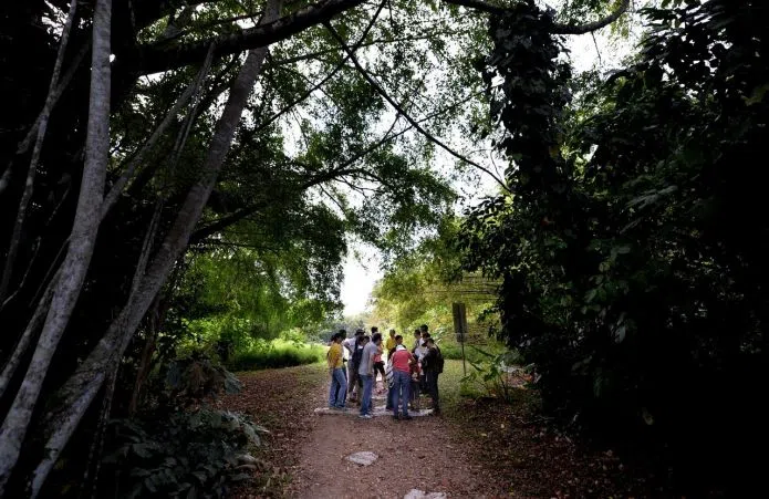 The Love Our MacRitchie Forest guides leading a tour through the trails of the CCNR. These tours are conducted by volunteers and nature experts about once every fortnight. Updates about tours can be found on their website.