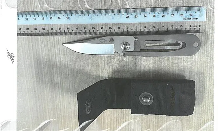 As Amashiro was leaving the shop, he felt that the man was staring at him. He then pulled out a flip knife with a 6.5cm-long blade and pointed it at the man, asking him "if he had a problem".