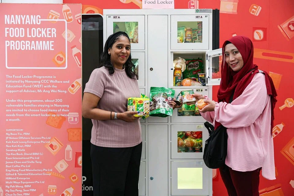 Over at Nanyang Community Club in Jurong West, low-income residents who hold a blue Chas card can redeem two free food packs each month from digital lockers.