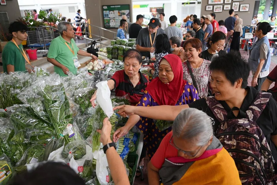 Punnets of cherry tomatoes, bundles of chye sim and vacuum-sealed salmon fillets - these are among the fresh food that residents of rental flats in Kampong Glam can pick up every Saturday from a market in Jalan Besar, for free.