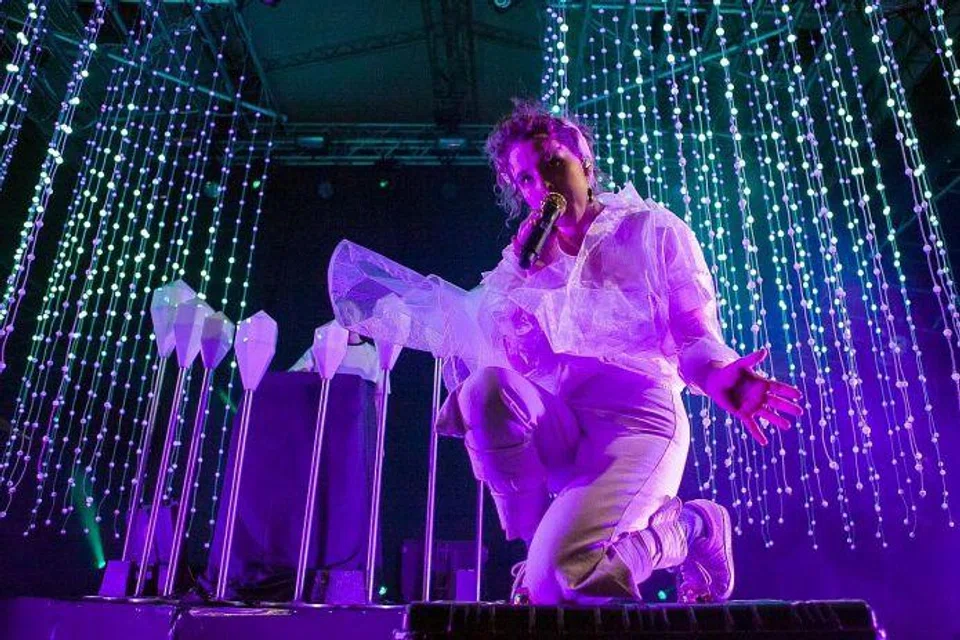 Festival-goers had to choose between Canadian futuristic-pop duo Purity Ring at the Cloud Stageand Australian music producer Flume at the bigger Bay Stage to cap off their night.